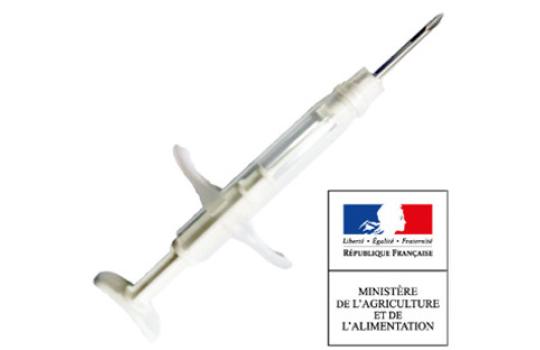 Notre puce proposée en seringue complète sous pochette stérile est agréée par le Ministère de l'Agriculture et de l'Alimentation pour l'identification des carnivores domestiques chiens chats furets, classe correspondante au code 26, avec certification annuelle réalisée auprès du laboratoire habilité CETIM.